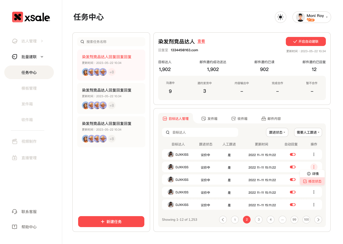 AI驱动的排期与项目管理系统,智能追踪合作达人从洽谈、内容创作到发布的全流程,实现数据透明与效果可视。